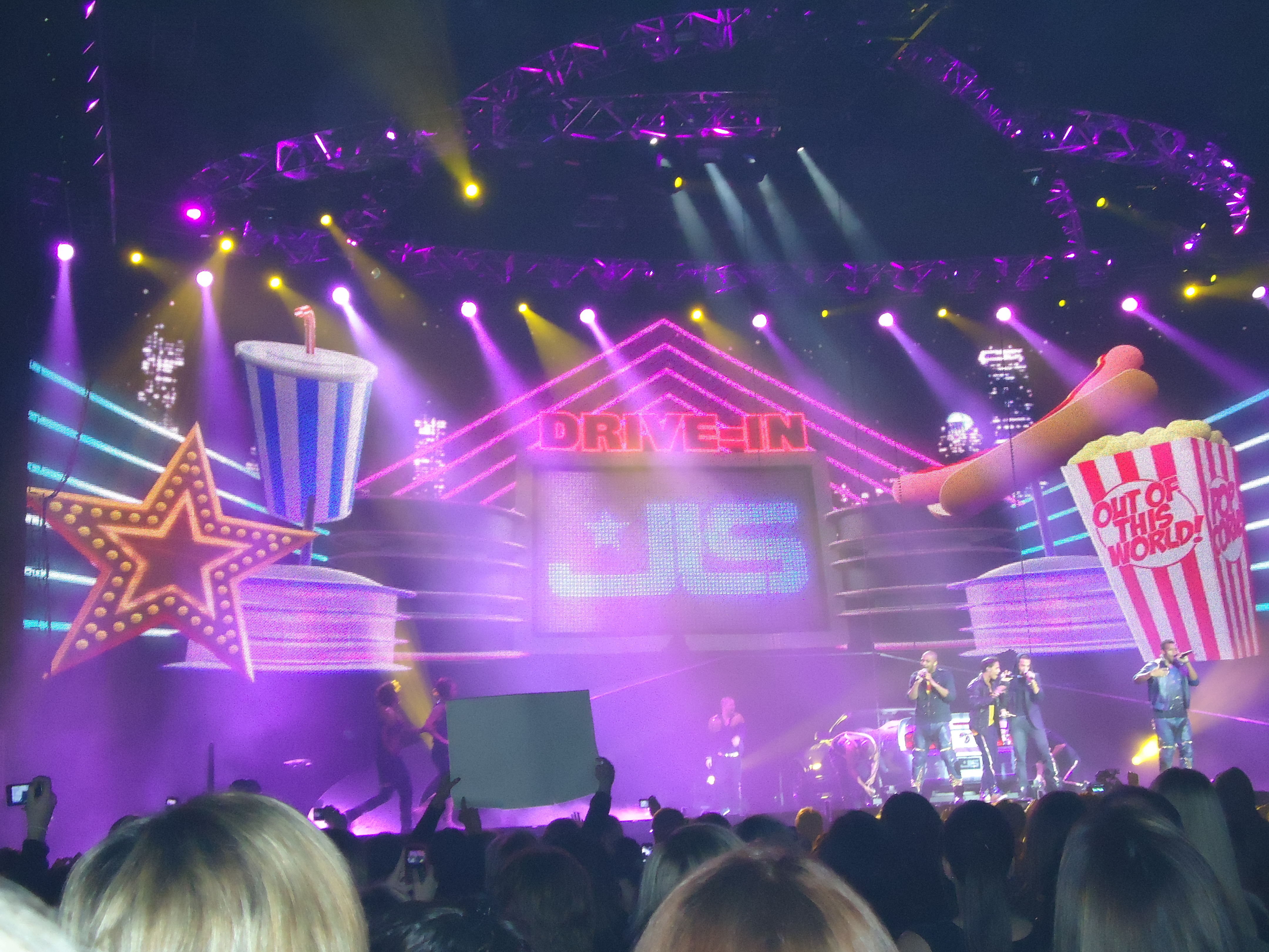 So JLS entered suspended from the ceiling in a car (Bentley, I think?) with their new song Eyes Wide Shut. They go through a few songs from their new album Outta This World and then took us back to the first album “JLS” which featured hits like Beat Again, One Shot and Everybody in Love.