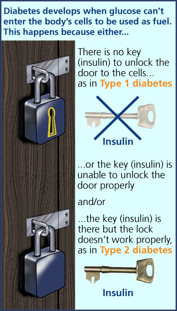 “Diabetes is a condition where the amount of glucose in your blood is too high because the body cannot use it properly. This is because your pancreas does not produce any insulin, or not enough, to help glucose enter your body’s cells – or the insulin that is produced does not work properly (known as insulin resistance).” (Diabetes uk website)