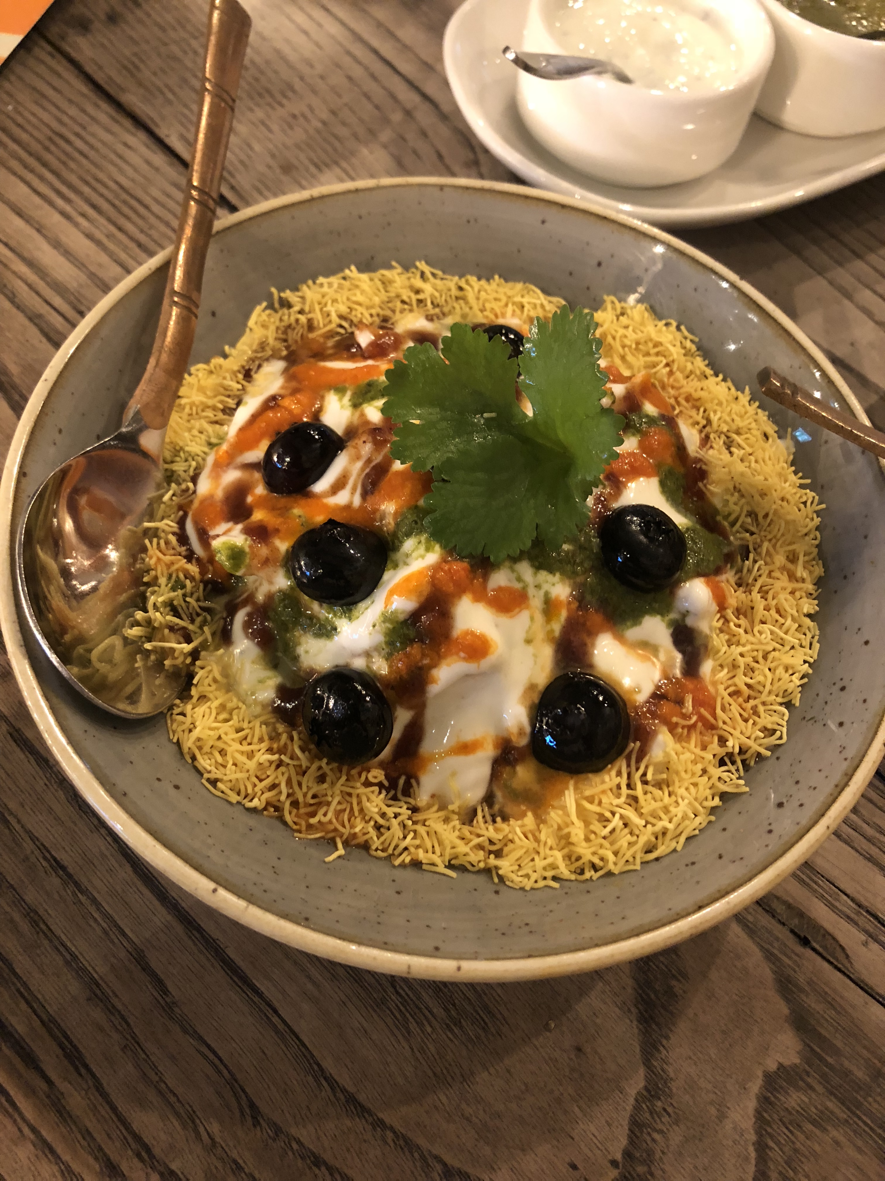 Also, make sure you check out the chicken karahi with garlic and coriander naan, pineapple punch pani puri, okra fries, aloo berry chaat, paneer makhani and samosa aloo chaat. Oh and the masala chips!