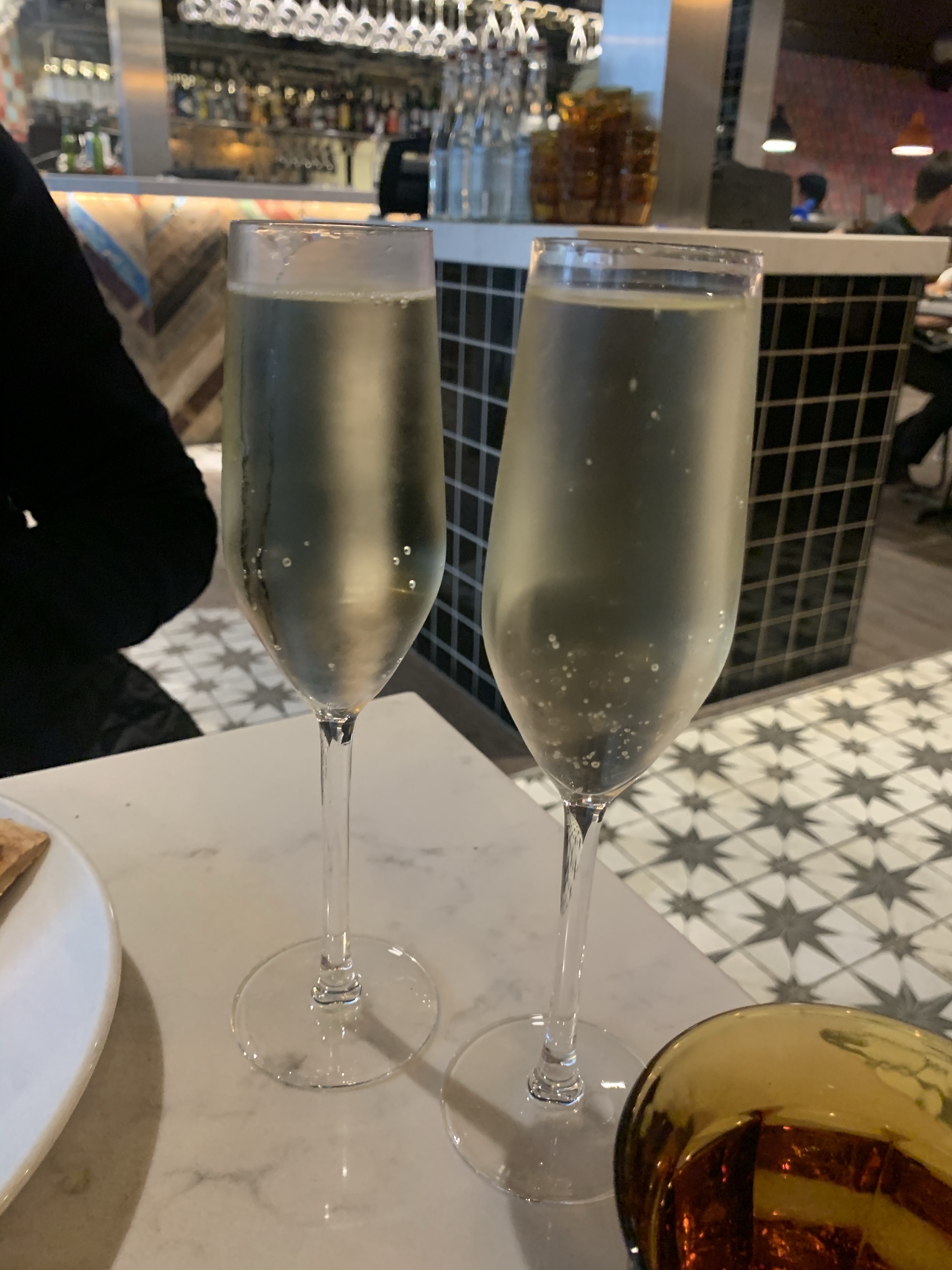 So, you’re given a bottle on your table, turn on the green light on the table and you’ll be bought multiple slices of pizza with a variety of toppings. You get a classics as well, as the restaurants own concoctions of deliciousness. And it’s fab because you can literally taste all the pizzas available on the day. They even do vegan options. This weekend we had margherita, Cajun chicken, some kinda meat feast, truffle and mushroom, mixed veg, ham and mushroom, goats cheese with caramelised onion, Cajun potato and red pepper (sorry I didn’t get enough pics!)… oh and a garlic bread pizza with cheese. We had garlic mayo and chilli mayo dips for our crusts and enjoyed our pizza with a glass of prosecco.